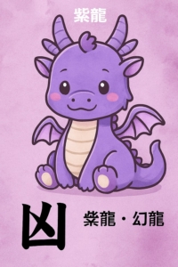 紫は、古来より王族・神秘・霊性の象徴。 紫龍はこの色の力をまとい、人生の転機や魂の変化期に現れるとされていることから、凶の時期にこそ神秘の力、紫龍の力が最も強く働き、導きを示すとされます。