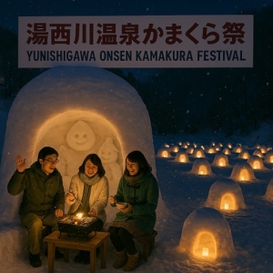 450年以上の歴史を持つ小正月の伝統行事「かまくら」。雪で作られた半球状の小屋の中で、水神様を祀りながら甘酒や餅でもてなされる体験は、雪国ならではの温かさを感じられます。夜には約3,500個のミニかまくらが灯され、「地上の天の川」と称される幻想的な光景が広がります。