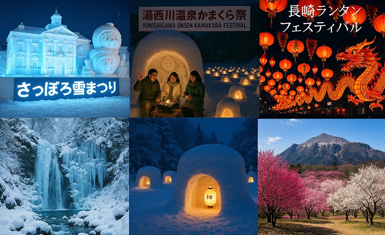冬の日本は、厳しい寒さの中にこそ特別な美しさが宿ります。2月は、雪と光が織りなす幻想的な景色、土地ごとの文化や温もりに触れられるイベントが各地で開催され、旅人をやさしく迎えてくれる季節です。札幌の壮大な雪像、横手の伝統行事が生む灯りの川、長崎を彩る色鮮やかなランタン——どれも冬だからこそ体験できる特別な時間です。